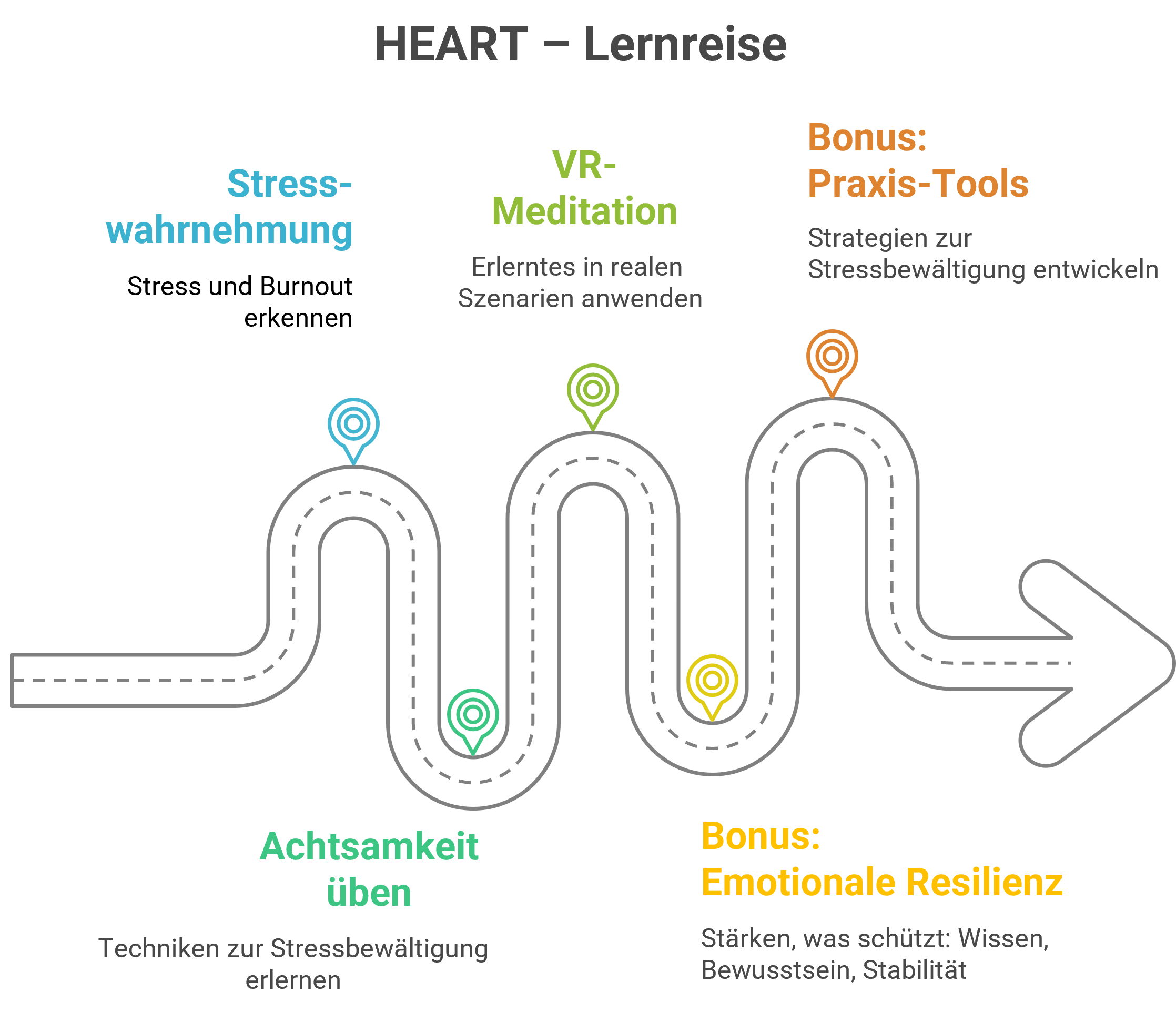 Das HEART-Projekt kombiniert Stressbewusstsein, Achtsamkeit und praktische Selbstfürsorge-Tools – flexibel und innovativ.